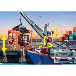 Espérons que ce grand cargo soit en règle car voici les douaniers qui arrivent. Contient quatre personnages, un cargo, un bateau et des accessoires. La grue pivote à 360°.