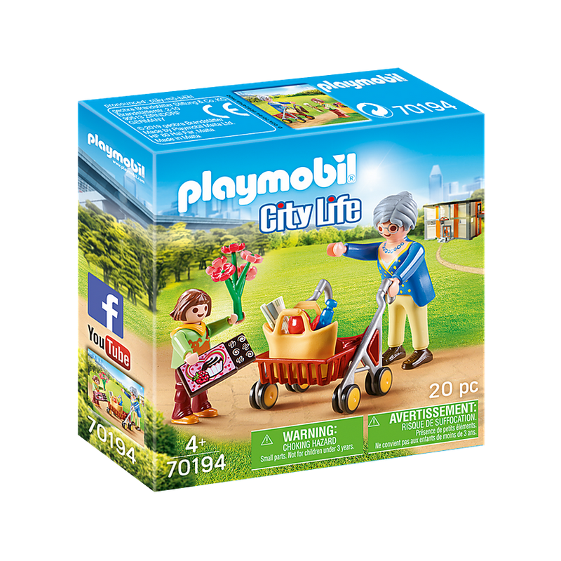 La petite fille va rendre visite à sa grand-mère avec un bouquet de fleurs en main. Elle sait que sa grand-mère adore les fleurs alors elle est toute contente de lui faire plaisir. Petite fille et grand-mère Playmobil City Life 70194 contient également un chariot, un sac et des accessoires. La grand-mère ne se déplace jamais sans son chariot qui lui permet de transporter ses affaires, son journal et de délicieux gâteaux pour sa petite fille ! Toutes les deux, elles vont marcher un peu avant de se poser sur un banc pour manger les gâteaux. Ensemble, elles se raconteront plein d'histoires et elles riront beaucoup.