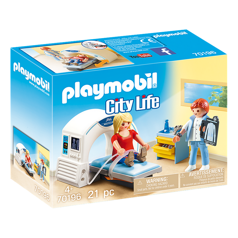 Le radiologue accueille ses patients dans la salle de radiologie. Il utilise l'appareil IRM pour les examiner. Grâce à cet appareil, le radiologue peut détecter plein de maladies. Avec la salle de radiologie Playmobil City Life 70196, votre enfant se met dans la peau d'un docteur et se raconte plein d'histoires. Il s'amuse en développant son imagination.