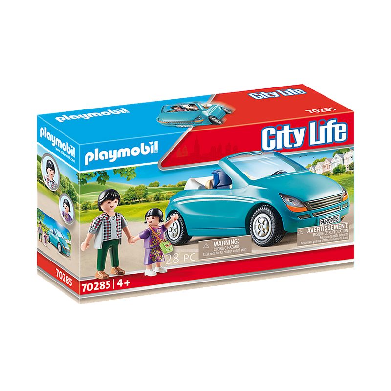 Aujourd'hui, papa emmène ses enfants faire un tour dans sa super voiture décapotable ! Les enfants adorent la voiture de papa ! Avec le coffret Papa avec enfant et voiture cabriolet Playmobil City Life 70285, votre enfant imagine plein d'histoires !