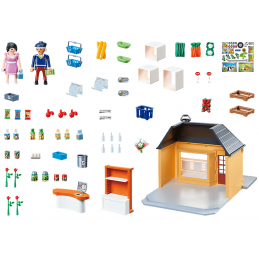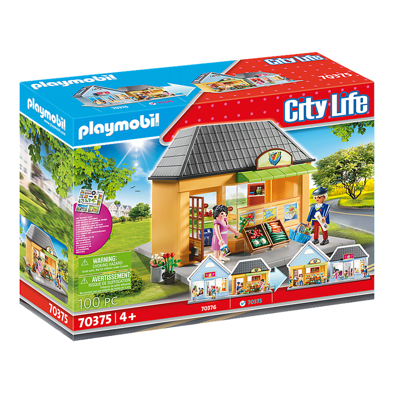 Crée ta ville selon tes envies avec la ville à personnaliser. Place chaque bâtiment où bon te semble et imagine de nouvelles aventures ! Il y a toujours du monde à l'épicerie de la ville ! Il faut dire qu'on y trouve de tout et que les produits n'y sont pas chers. En plus, la gérante est très gentille. Allons faire les courses pour préparer le repas de ce soir !