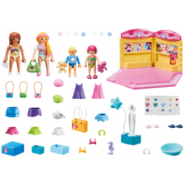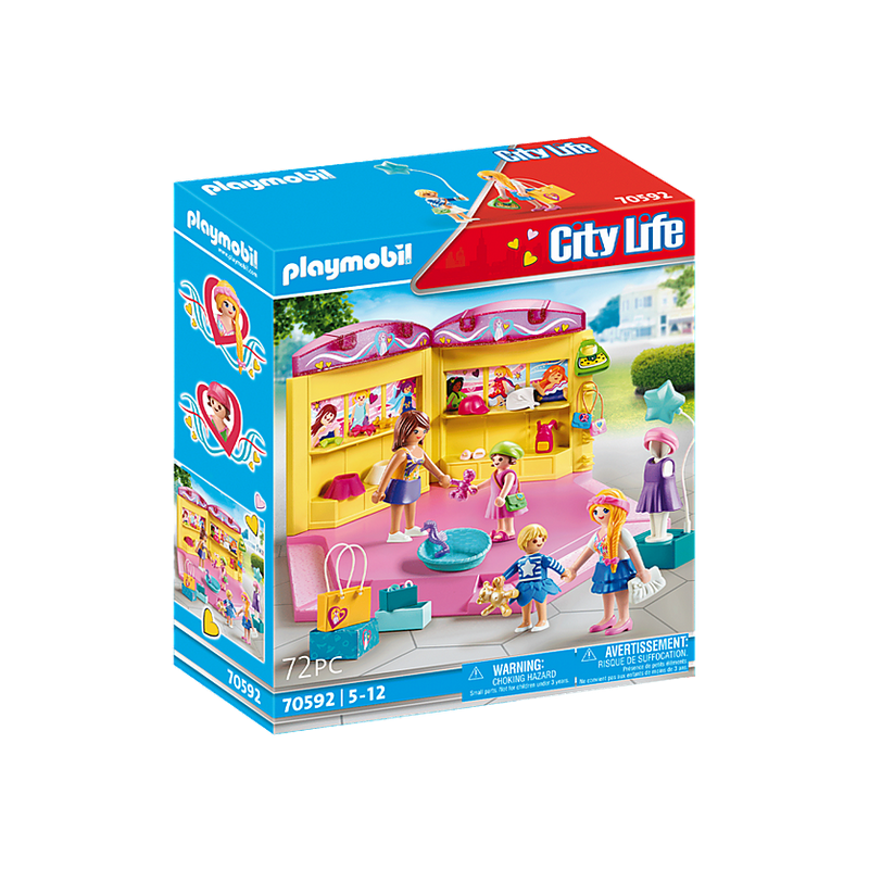 Les nouvelles modes et les tendances vestimentaires concernent aussi les enfants, la preuve : une boutique de mode pour enfants vient d'ouvrir en ville. Habille tous les enfants de la ville et conçoit le style de leur rêves. Contient quatre personnages. Peut être combiné avec l'Atelier design de mode (réf. 70590) ou la Boutique de mode (réf. 70591.)