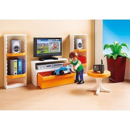 Avec sofa et buffet pour la télévision à écran plat et la HiFi. La lampe peut s'allumer en blanc ou avec des effets lumineux (2 piles 1,5 V micro requises).