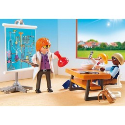 Attention professeur, ça va exploser ! Le professeur et ses élèves font des expériences en cours de chimie. Ces petits scientifiques en herbe aiment mélanger les fluides et les solides dans les tubes à essai mais ça n'a pas toujours les effets escomptés... Avec trois personnages, du mobilier et du matériel pour les expériences (tube à essais, bols, outils, livres...)
