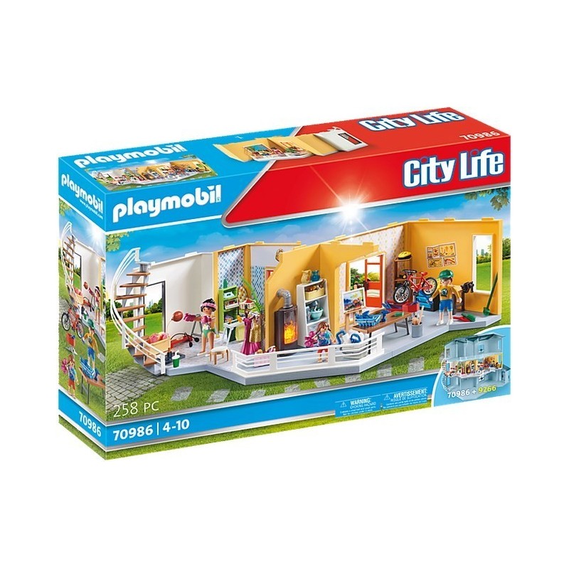 Offre suffisamment d'espace pour aménager cinq chambres et dispose d'un escalier, d'un balcon et d'une terrasse avec barbecue. Avec sonnette et éclairage extérieur fonctionnant réellement (2 piles 1,5 V micro requises). Dimensions : 67 x 49 x 40 cm (LxPxH). Peut être combiné avec : 6554 Etage supplémentaire pour Maison moderne...