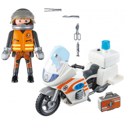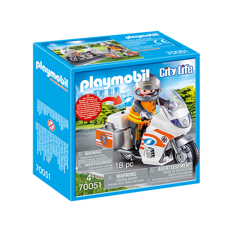 Figurines: 1 médecin d'urgence Accessoires: 1 moto de sauvetage avec lumière clignotante, 1 mallette de médecin, 1 jeu d'instruments chirurgicaux