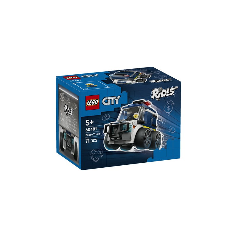Inspirez des aventures policières palpitantes aux enfants de 5 ans et plus avec le petit jouet de construction LEGO City Véhicules - Le camion de police (60481). Doté de jantes massives, de pneus en caoutchouc taille basse, d’un pare-buffle, de barreaux de prison et de gyrophares, ce véhicule robuste invite les jeunes constructeurs.trices à explorer le monde de LEGO City. Le set inclut également une minifigurine junior de policier LEGO City Véhicules à placer au volant pour vivre des jeux passionnants. Faisant partie de la collection LEGO City Véhicules, le camion de police, facile à construire, ravira les jeunes enfants. Ce jouet est un superbe cadeau d’anniversaire pour garçons ou filles, fans de voitures et de jeu créatif. Combinez-le avec d’autres sets LEGO City (vendus séparément) pour encore plus d'amusement. L’application LEGO Builder propose une expérience de construction enrichie avec zoom, rotation de la maquette en 3D, sauvegarde et suivi de la progression.