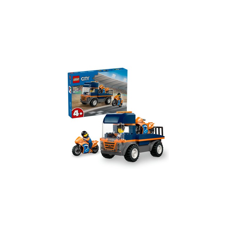 JOUET CAMION DÈS 4 ANS – Le transporteur de motos LEGO City est un set d’initiation amusant pour les enfants de 4 ans et plus qui aiment jouer avec des maquettes de véhicules et organiser des courses