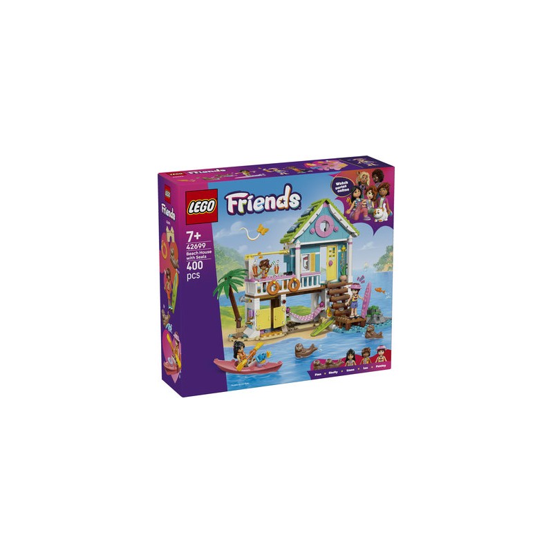 JOUET MAISON DE PLAGE – Les enfants inventent des histoires créatives avec le jeu de construction La maison sur la plage et les phoques LEGO Friends pour filles & garçons dès 7 ans, incluant 3 mini-poupées, 2 figurines d'animaux & des accessoires