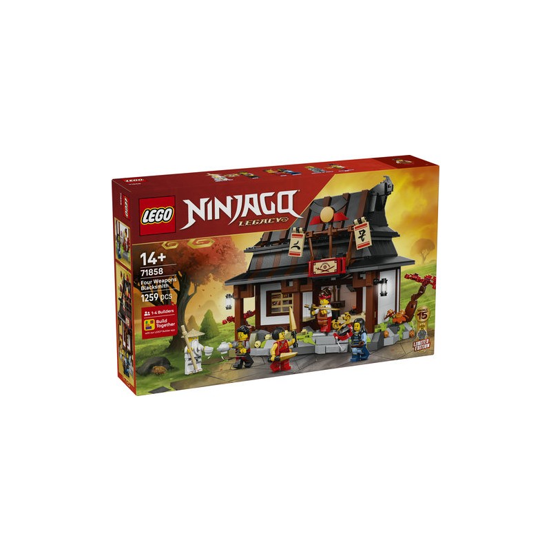 Celebrate the LEGO NINJAGO TV show with this Four Weapons Blacksmith 15th Anniversary (71858) building set for 14+ year old boys and girls. Nostalgic fans will be thrilled that, for the first time, they can build, display and recreate action with the iconic blacksmith’s workshop – the first-ever location in the pilot episode of the LEGO NINJAGO TV show.