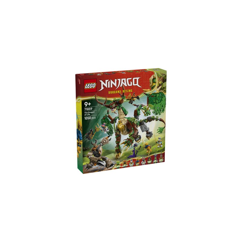 The LEGO NINJAGO The Dragon of Life (71859) ninja toy for 8+ year old boys and girls lets fans recreate scenes from season 4 of the NINJAGO Dragons Rising TV show. This toy dragon figure can spread its wings out wide or tuck them in, and has a posable jaw, head, neck, legs, ankle, claws, tail and a saddle for a minifigure.