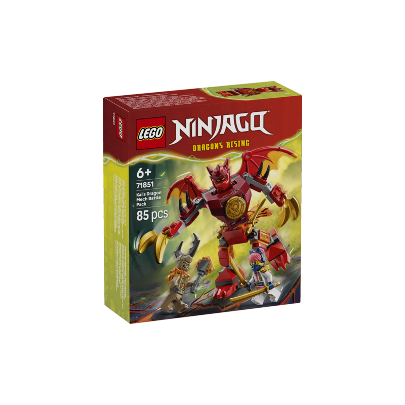 Boys, girls and fans of the NINJAGO® Dragons Rising TV show ages 6 and up can enjoy hours of imaginative play with the LEGO® NINJAGO Kai’s Dragon Mech Battle Pack (71851) building set. This playset features a dragon mech toy with posable legs, large wings, claw hands and an upper body that rotates 360 degrees, plus a cockpit to place a minifigure inside. This great value ninja toy also comes with 3 minifigures: Kai with 2 sword accessories, Sora with 2 swords and an Earth Monster toy with claw hands, letting kids enjoy hours of adventures as they act out scenes from season 4 of NINJAGO Dragons Rising.