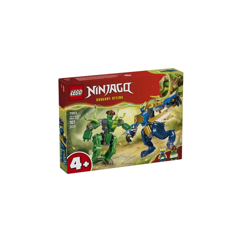 The LEGO NINJAGO Jay's Dragon Mech Fight (71853) building toy for boys and girls ages 4 years old and up lets kids dream up epic mech vs. mech showdowns. This ninja toy playset includes 2 buildable mechs that can provide young NINJAGO fans with hours of creative play possibilities. Jay's dragon mech has an opening cockpit for his minifigure and a posable tail, wings, arms, legs, body and fingers, while the Mutation Monster's battle mech has an opening cockpit for his minifigure and a posable torso, arms, tentacles and legs. The set includes 4 interchangeable weapons for additional play value: 2 swords, a spear and a set of claws. This construction playset has been designed to help young builders discover the joy of building with LEGO bricks and comes with a Starter Brick (a partly constructed base) that gets kids building quickly and with confidence. This building toy makes a fun birthday gift or any-time treat for young boys and girls who love ninja toys and the action-packed world of LEGO NINJAGO. Contains 107 pieces.