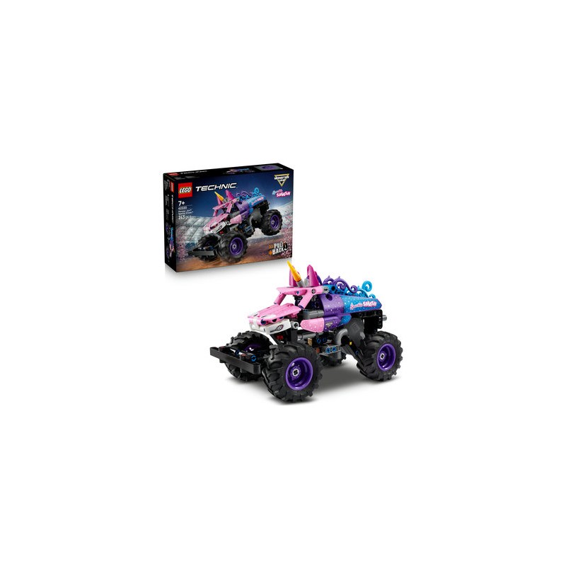 MONSTER JAM À CONSTRUIRE POUR GARÇON OU FILLE DÈS 7 ANS – Le Monster Jam Sparkle Smash LEGO Technic à rétrofriction offre des heures de jeu aux enfants qui aiment les monster trucks et les licornes