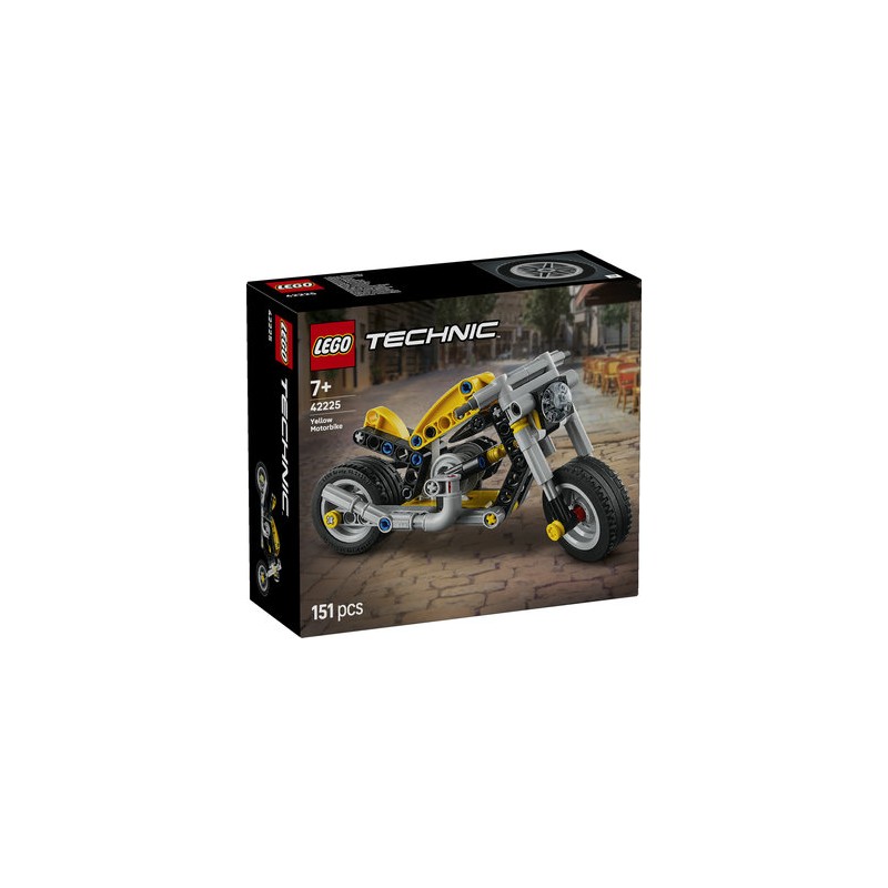 Inspire young engineers with the LEGO Technic Yellow Motorcycle (42225) building toy for boys and girls ages 7 years old and up. Kids can have lots of fun building this yellow LEGO motorcycle toy packed with authentic details, like a working steering function and a 3-piston engine connected to the rear wheel with a chain. Young builders can discover how motorcycles work as they test the steering to navigate imaginary roads and explore how the engine connects to the rear wheel. This STEM building kit introduces engineering concepts and can help kids understand motorcycle mechanics through hands-on play. Makes a great birthday gift for boys and girls who enjoy building sets and vehicle toys. LEGO Technic sets feature realistic movements and mechanisms that introduce young LEGO builders to the universe of engineering in an approachable and realistic way. Kids can build with confidence using the LEGO Builder app, where they can zoom, rotate models in 3D and track progress with an easy-to-follow digital version of the printed instructions. Contains 151 pieces.