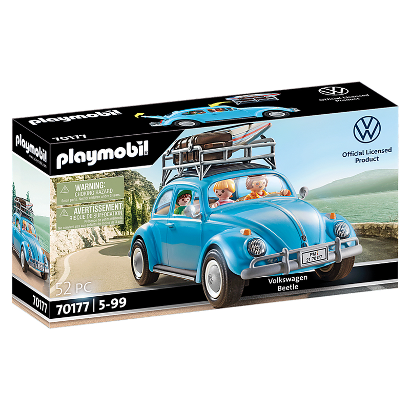 Accessoires : 1 Coccinelle Volkswagen, 1 galerie de toit, 1 valise, 1 glacière, 1 planche de surf, 1 parasol, 1 serviette, 1 motte de sable, 1 château de sable, 1 seau, 1 râteau, 1 pelle, 1 casquette, 3 bouteilles.